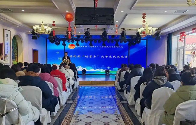 共青团二道区委书记赵悦在动员讲话中欢迎学子返乡实践,并勉励大家厚植家国情怀、珍惜实践岗位,将专业知识转化为服务社会、建设家乡的实际能力,践行“请党放心,强国有我”的青春誓言。