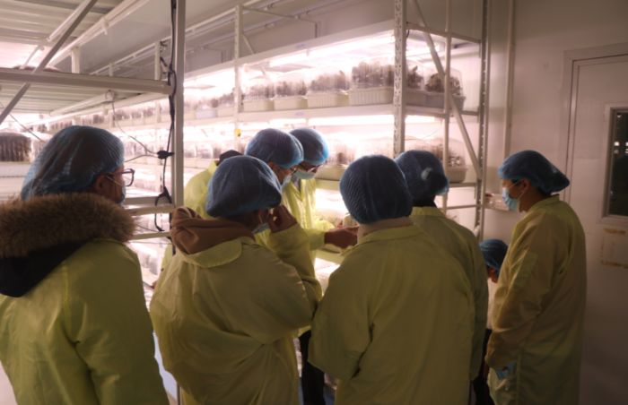 图 1实践团在中科三安植物工厂观察金线莲设施栽培