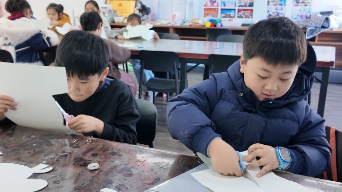 冬日的威海经区,暖阳驱散寒意,洒在社区活动中心的教室里。山东大学“山海微光”支教团的支教活动已进入第三天,按照社区既定的课表安排,志愿者们携手社区老师,以“上午手工创作、下午美育启蒙+趣味游戏”的节奏,为孩子们带来了一堂堂兼具温度与趣味的课程,让美育的种子在童心沃土中悄然生长。