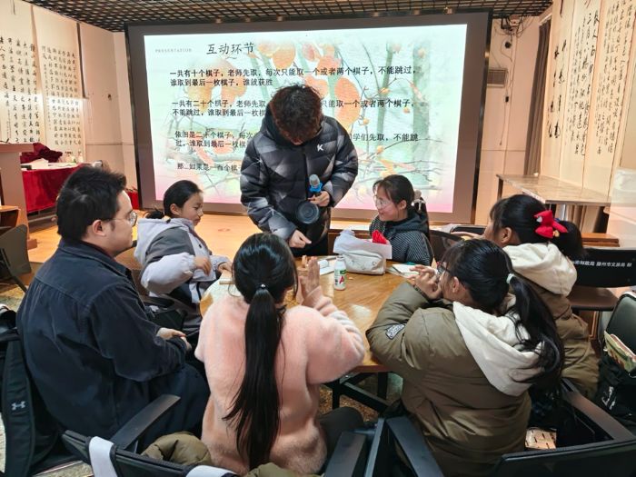 整堂课程摒弃了枯燥的公式讲解,以“游戏+讲解+拓展”的模式,让孩子们在轻松的氛围中感受数学归纳法、逆推法的妙用,体会“从特殊情况入手寻找普遍规律”“正难则反”的数学思维。老师的讲解生动易懂,贴合小学生的认知特点,滕荫绘梦队的同学们也在旁适时引导,耐心解答孩子们的疑问,确保每个孩子都能参与其中、学有所获。