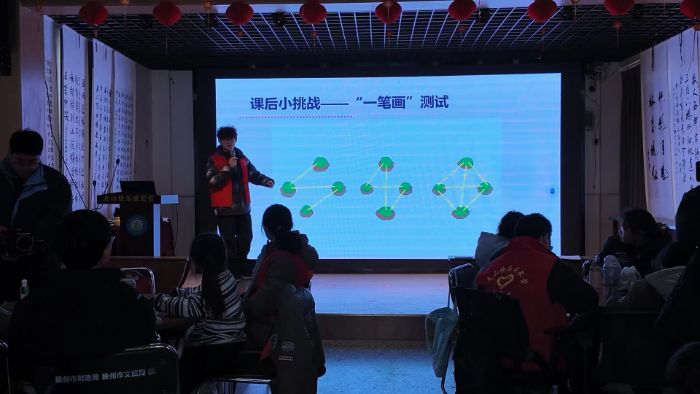 为丰富乡村孩子们的课余生活,激发青少年的数学探索兴趣,今天,山东大学物理学院大一学子张宇翔在山东省枣庄市滕州市龙阳镇龙山快乐成长营,以《柯尼斯堡的七桥迷宫》为主题,为营内孩子们带来了一堂趣味十足的数学启蒙兴趣课,让孩子们在解谜中感受数学的魅力。